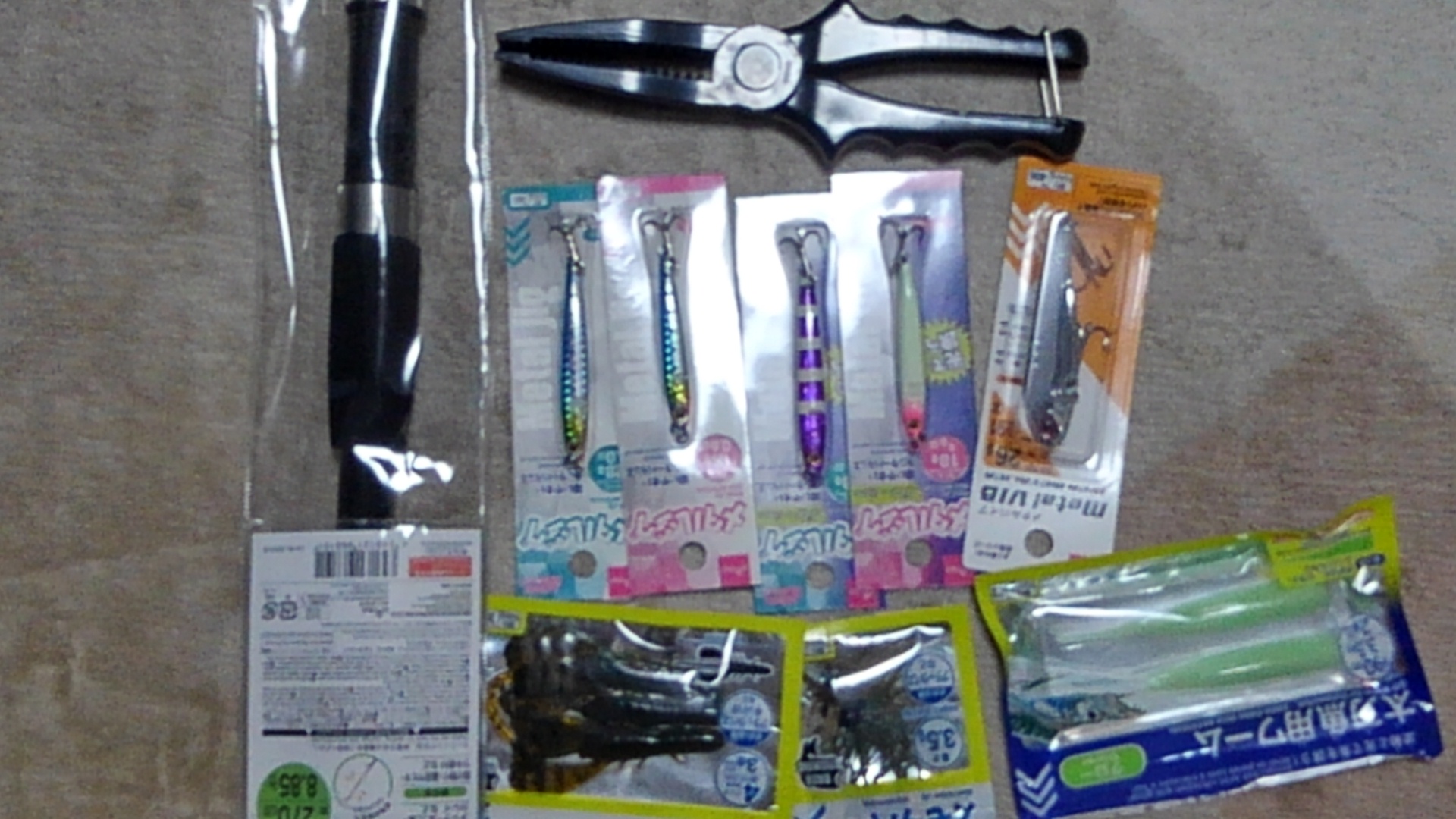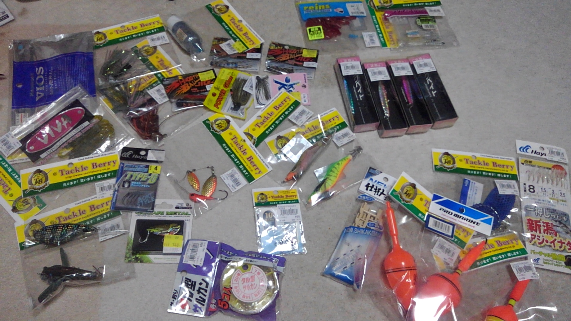 後日ダムサイトにて釣り予定のためあんま要らんもん含め散財。目当ての1つはナベ。スカートの無いDゾーン(1/4~1/2ozくらい)しか無かった。300円は高いわ。他の目当てはラバジ。およそ200円の4個にスモラバ4個。こいつらすぐ失くすからOK。