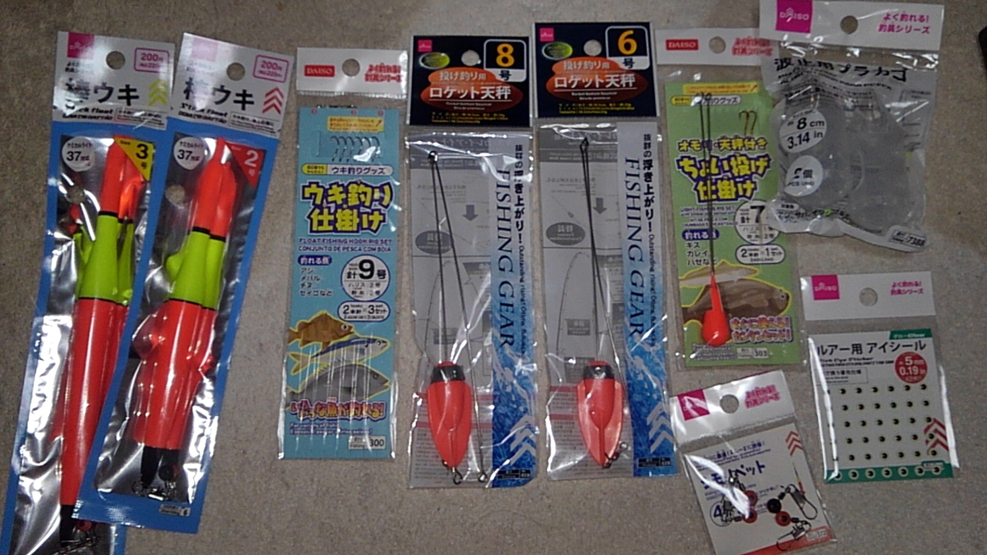 針、カゴ、ウキ3本、仕掛巻